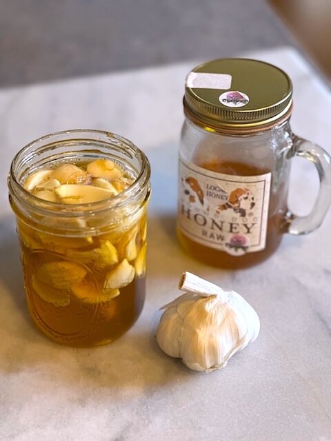 Regular use—such as taking a spoonful daily or adding it to warm teas (not hot), dressings, or marinades—may help strengthen the immune system, reduce inflammation, and promote overall wellness. Since the garlic will lose its bite, you can eat the garlic bulbs and add them to your dressings and marinades.